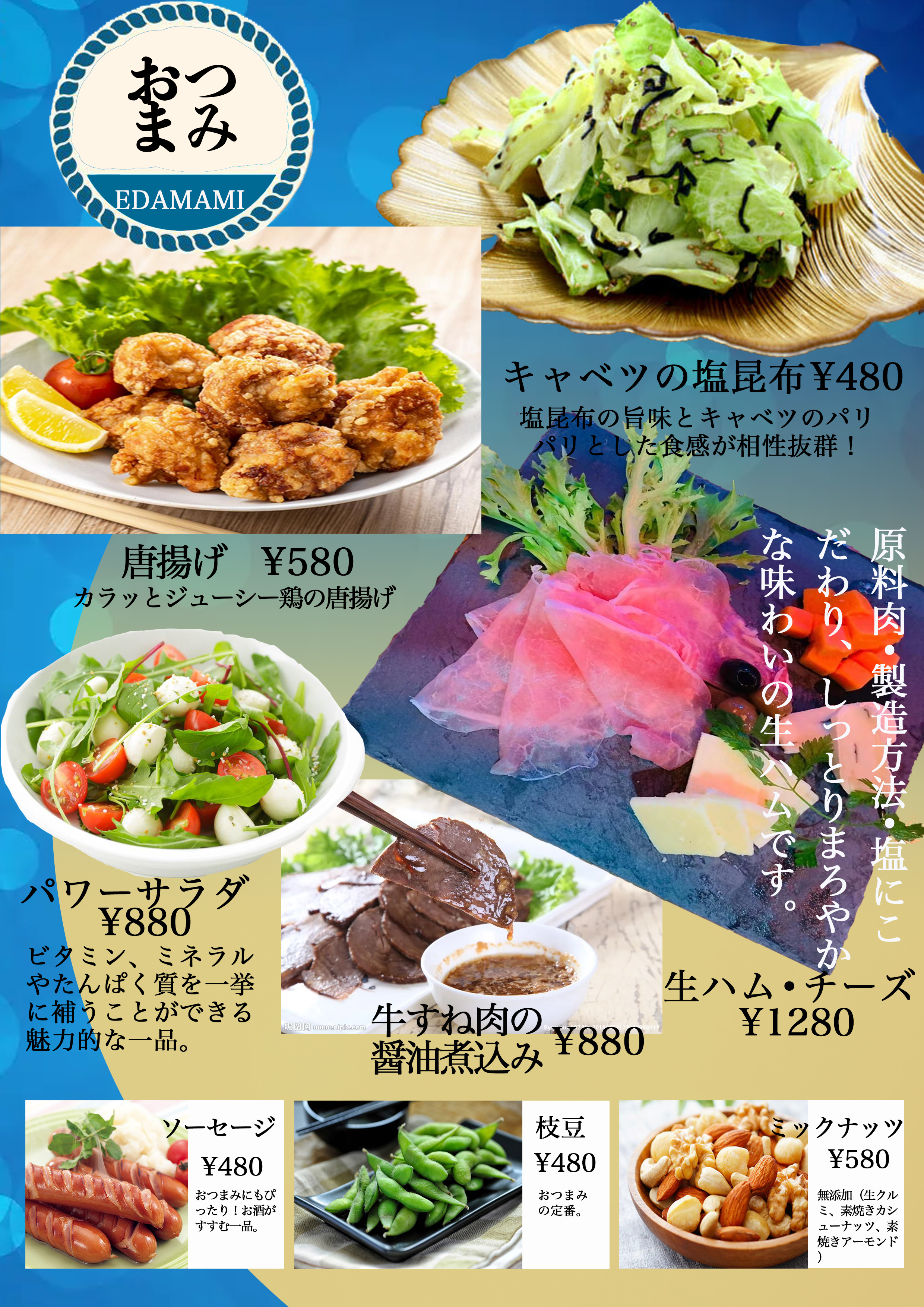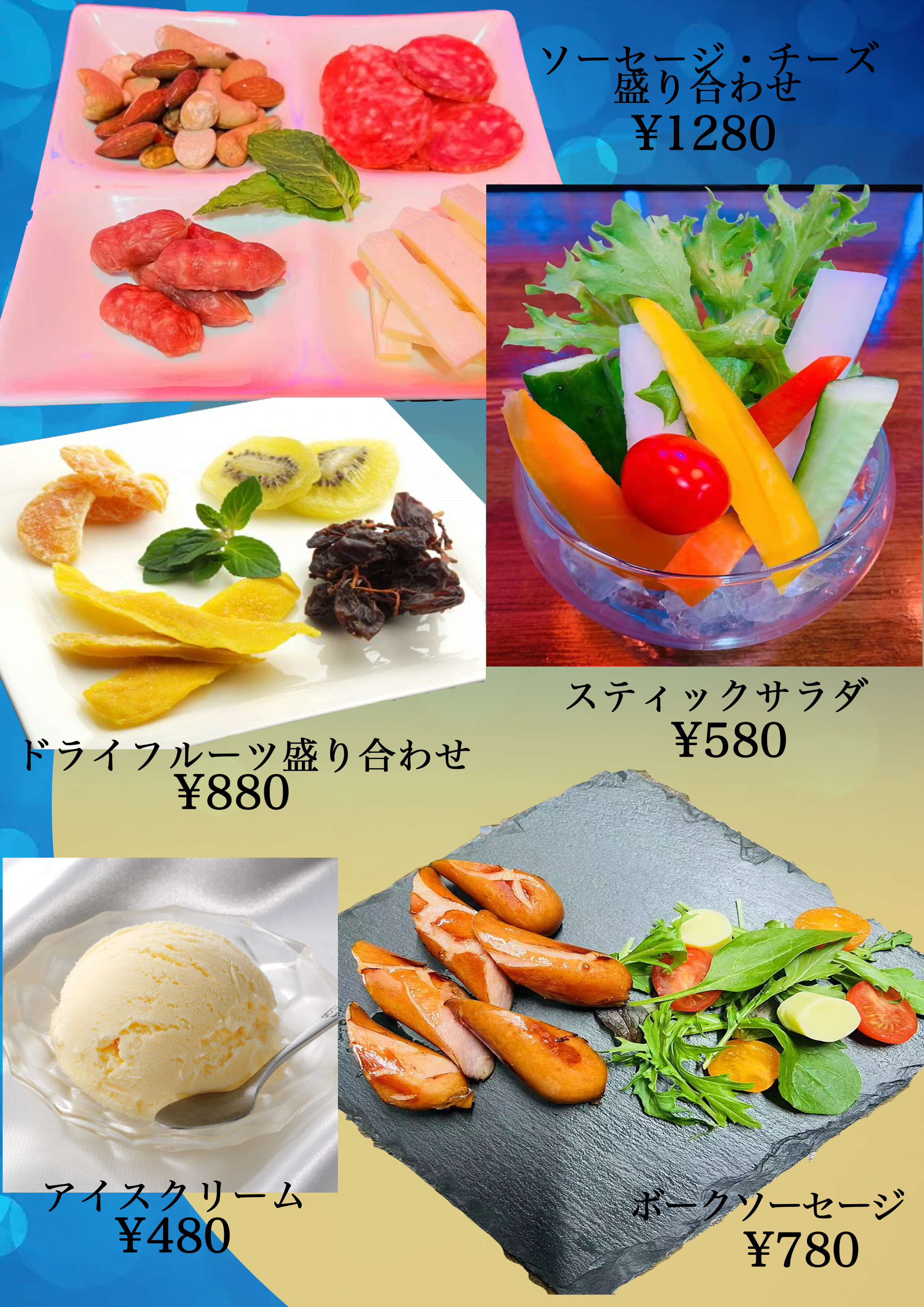 レモンサワーライムサワー角ハイボール麦茶割りジャスミン茶割りウーロン茶割り緑茶割り ¥600〜